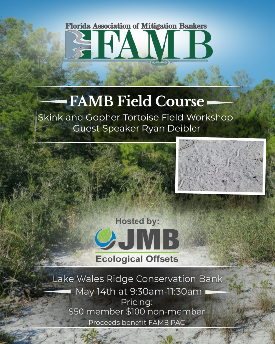 The Florida Association of Mitigation Bankers (FAMB) invites you to an immersive, hands-on field workshop at the Lake Wales Ridge Conservation Bank, focused on sand skink and gopher tortoise conservation and habitat restoration.This unique field experience brings together practitioners, regulators, and conservation professionals for an in-depth look at one of Florida’s most ecologically significant landscapes.